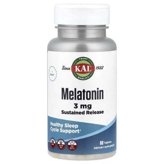 KAL, Melatonin SR, Мелатонін + B6 3 мг, 60 таблеток